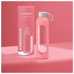 Γυάλινο μπουκάλι νερού Wessper με ροζ θήκη 1L