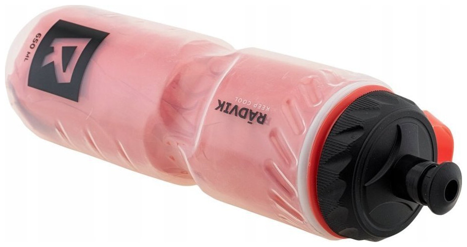 Bidon Radvik kald Właściwości:pojemność 650 mlMateriał:peppsilikonpowłoka aluminiowaKolor:różowyczarny