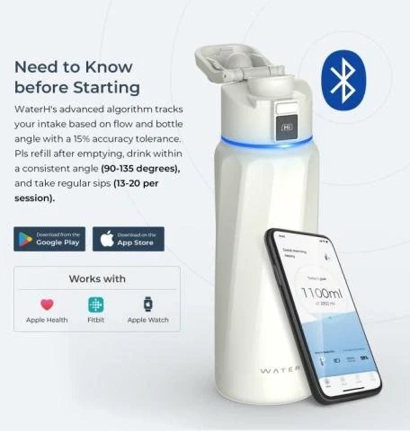 Μπουκάλι έξυπνης κατανάλωσης WaterH BOOST Chug Lid, 946 ml, λευκό