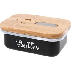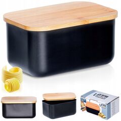 Βουτυροθήκη Δοχείο για Βούτυρο Ατσάλινη Μαύρη Μπαμπού Vilde 15x10x7,5 cm