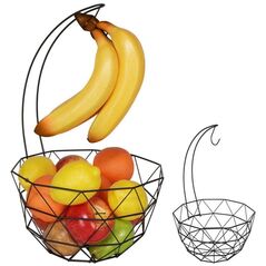 Vilde Καλάθι για φρούτα και λαχανικά με κρεμάστρα μεταλλικό καλάθι μαύρο μπολ loft