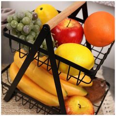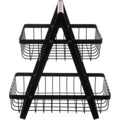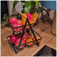 Vilde Δίχτυ για φρούτα και λαχανικά μεταλλικό καλάθι 2 επιπέδων μαύρο loft 27x17,5x29 cm