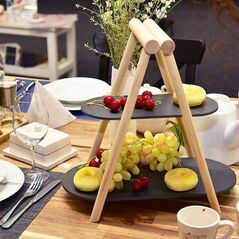 Orion Διπλή Ξύλινη Πιατέλα με Πέτρα 41x24x38,5 cm