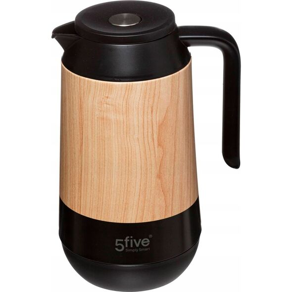 Ανακαλύψτε την κομψότητα και τη λειτουργικότητα με την κανάτα θερμός 5five, χωρητικότητας 1 λίτρου, σε μαύρο χρώμα με ξύλινη διακόσμηση. Ιδανική για να διατηρείτε τα ροφήματά σας στη σωστή θερμοκρασία, είτε πρόκειται για ζεστά είτε για κρύα. Η μοντέρνα της εμφάνιση με την ξύλινη λεπτομέρεια προσθέτει μια πινελιά στυλ στο τραπέζι σας, καθιστώντας την ιδανική για κάθε περίσταση, από καθημερινές στιγμές μέχρι ειδικές εκδηλώσεις. Κατασκευασμένη από υψηλής ποιότητας υλικά, η κανάτα αυτή εξασφαλίζει αντοχή και μακροχρόνια χρήση. Η εργονομική της λαβή προσφέρει άνετο κράτημα, ενώ το καπάκι ασφαλείας αποτρέπει διαρροές και διατηρεί τη θερμοκρασία σταθερή. Είτε θέλετε να απολαύσετε ένα ζεστό καφέ το πρωί είτε ένα δροσιστικό τσάι το απόγευμα, η κανάτα θερμός 5five είναι η ιδανική επιλογή για εσάς. Ενσωματώστε την στην καθημερινότητά σας και απολαύστε την τέλεια ισορροπία μεταξύ αισθητικής και πρακτικότητας.