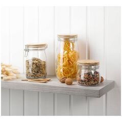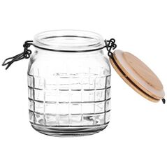 Excellent Houseware Γυάλινο δοχείο κουζίνας με μπαμπού καπάκι, αεροστεγές με κλιπ και στεγανοποίηση 1,1 l