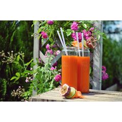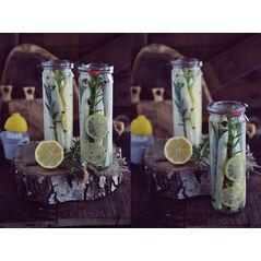 Ξύλινο κουτί για βάζα ποτών + 6 x βάζο με καλαμάκι, Zeller