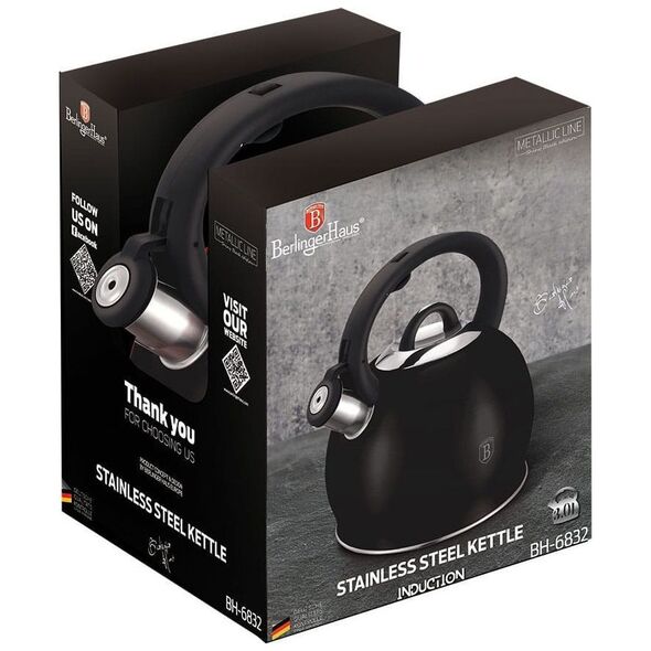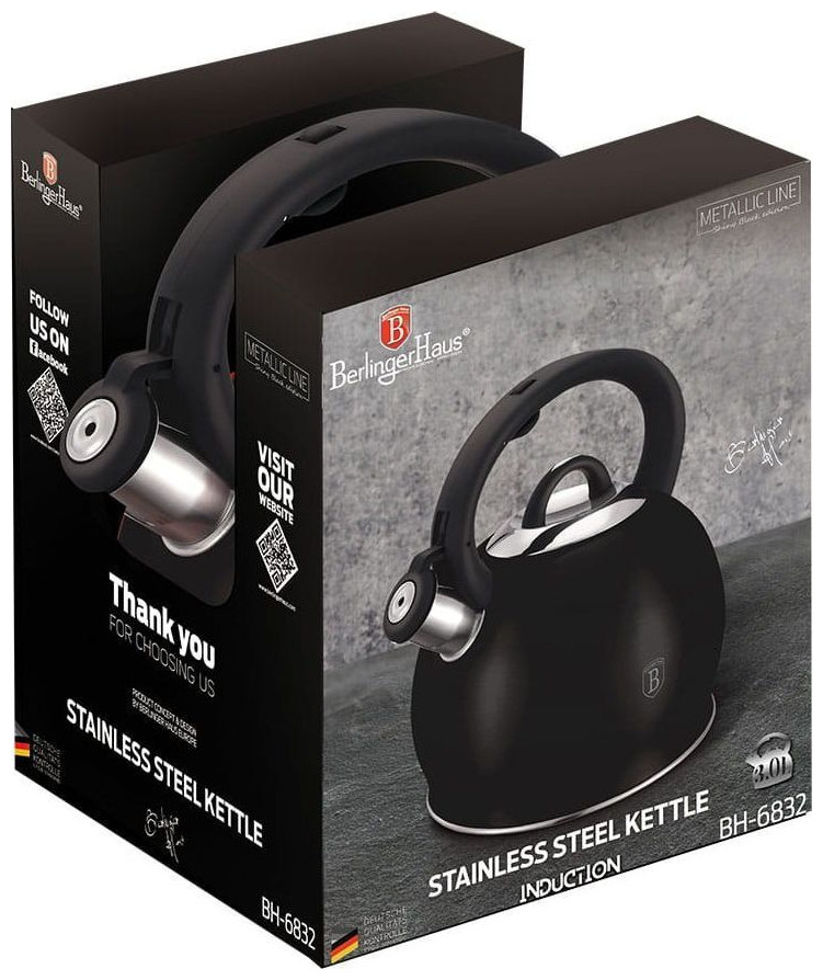 Κλασικός βραστήρας με σφυρίχτρα από ανοξείδωτο ατσάλι 18/10, λακαρισμένο σε μαύρο χρώμα. Σειρά Shiny Black Edition Χωρητικότητα: 3 λίτρα. Ο τριπλός θερμικός πάτος εναλλασσόμενου ρεύματος θα επιτρέψει την άνετη χρήση για πολλά χρόνια. Η εργονομική, αντιολισθητική λαβή και η σφυρίχτρα που ανοίγει με ένα κουμπί στη λαβή εξασφαλίζουν ευκολία και άνεση στη χρήση. Ο μοναδικός σχεδιασμός θα κάνει αυτόν τον βραστήρα εξαιρετικό διακοσμητικό στοιχείο σε κάθε κουζίνα.