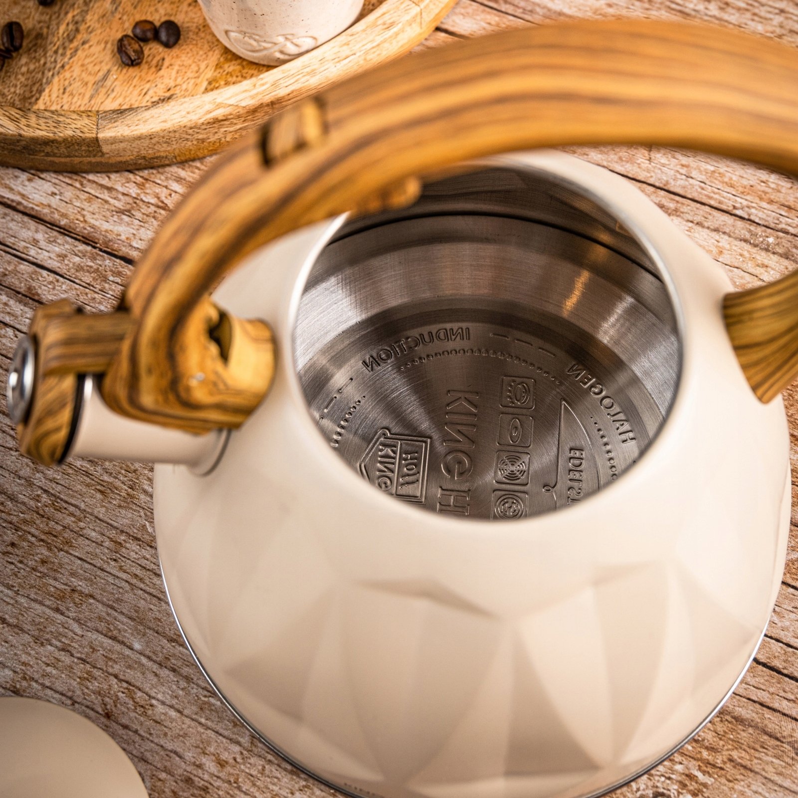 CZAJNIK 2L Z GWIZDKIEM KINGHOFF KH-1998 BEŻOWY MAT