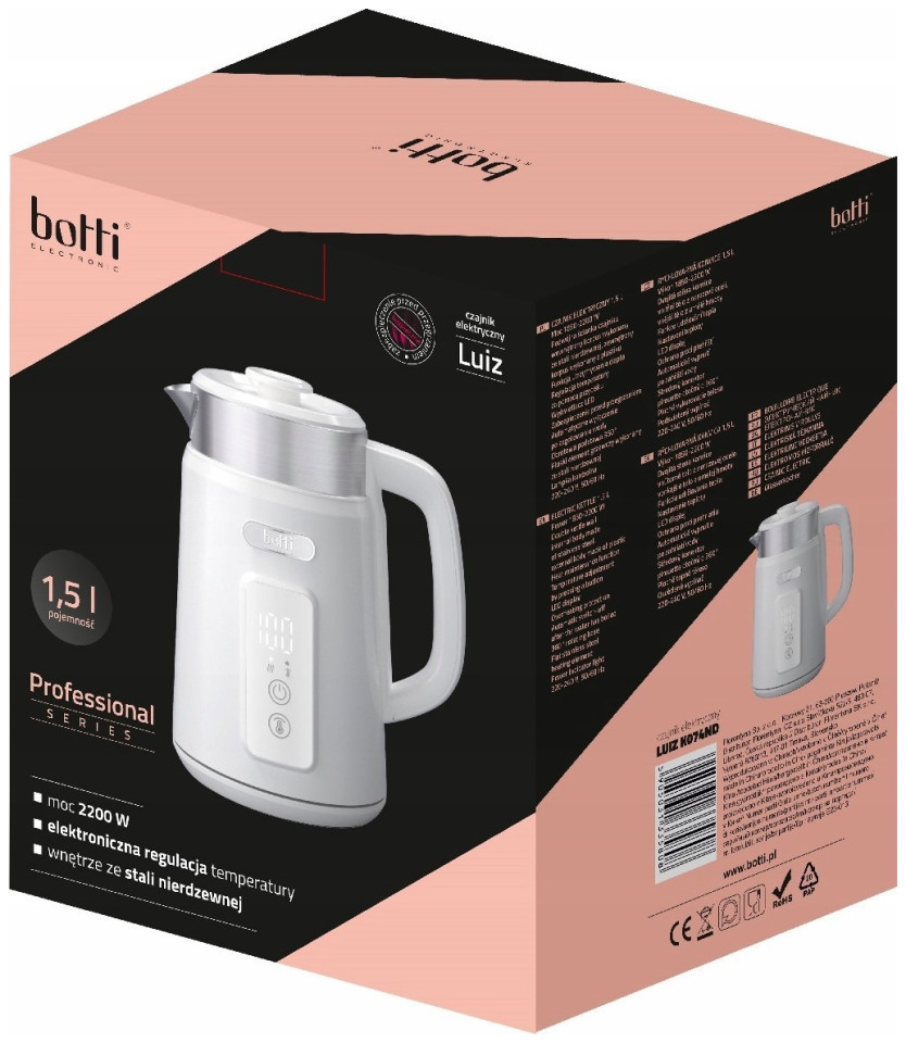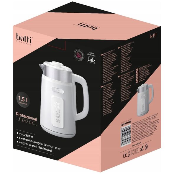 Kela Βραστήρας K-074ND LUIZ Λευκός 1.5 L με ρύθμιση θερμοκρασίας (40,50,60,70,80,90,100°C, διπλά τοιχώματα)