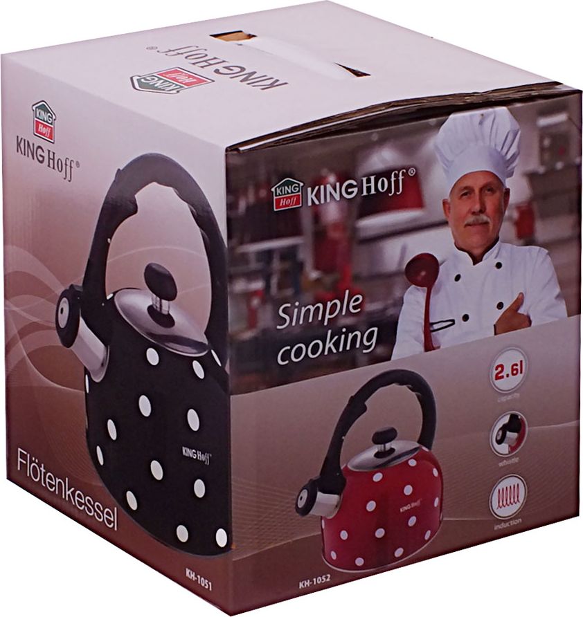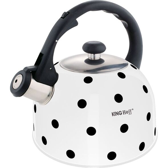 Czajnik 2.6L z gwizdkiem KINGHOFF wykonany z wysokiej jakości stali nierdzewnej pokrytej emalią. Można go stosować na wszystkich rodzajach kuchenek, także na kuchenkach indukcyjnych. Gwizdek zintegrowany w rączce. Pokrywka z polerowanej stali nierdzewnej.Ciekawy wzór w groszki. Kolor BIAŁY.