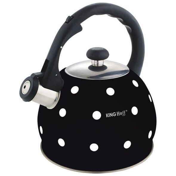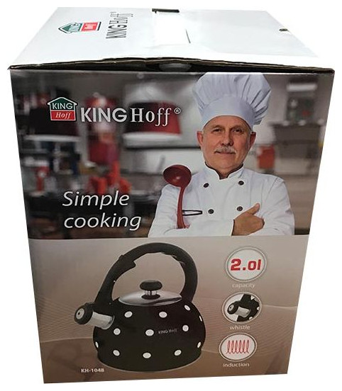 Βραστήρας KINGHOFF 2.0L με σφυρίχτρα από υψηλής ποιότητας ανοξείδωτο ατσάλι με επικάλυψη σμάλτου. Μπορεί να χρησιμοποιηθεί σε όλους τους τύπους κουζινών, συμπεριλαμβανομένων των επαγωγικών κουζινών. Σφυρίχτρα ενσωματωμένη στη λαβή. Γυαλισμένο καπάκι από ανοξείδωτο χάλυβα. Ενδιαφέρον μοτίβο πουά.