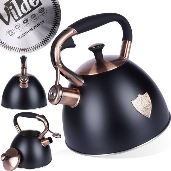 Βραστήρας με σφυρίχτρα από ανοξείδωτο ατσάλι Vilde μαύρος 3 l