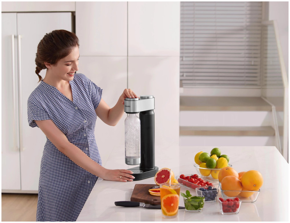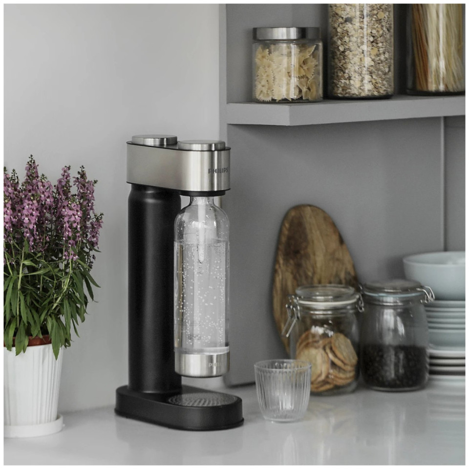 Ανανεώστε τη ζωή σας, χαρίστε στον εαυτό σας αναζωογονητικό ανθρακούχο νερό ανά πάσα στιγμή με τον κατασκευαστή αναψυκτικών Philips GoZero. Απλώς ακολουθήστε 3 απλά βήματα: γεμίστε, στρίψτε και πατήστε! Ο κομψός σχεδιασμός είναι φινιρισμένος με βουρτσισμένο ανοξείδωτο χάλυβα.