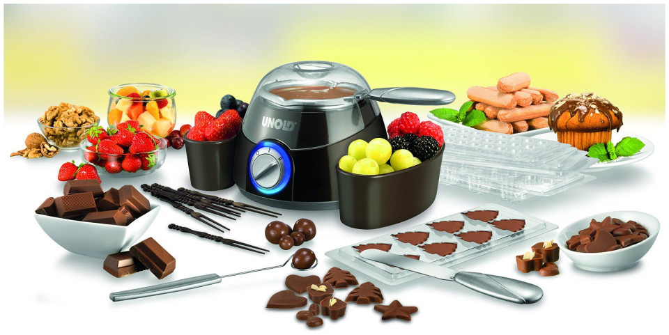 Chocolatier Unold 48667 to doskonały sposób na przygotowanie własnych czekoladek. Liczne akcesoria gwarantują przygotowanie czekoladek o różnej wielkości, różnych kształtach i smakach. Urządzenie może być używane także jakofondue