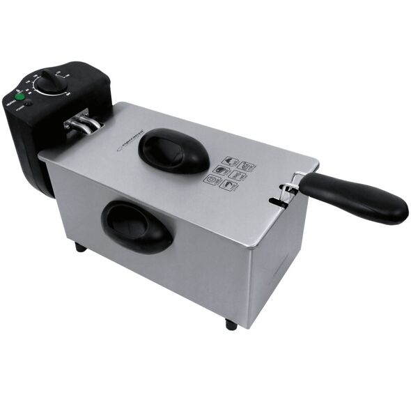 Η φριτέζα Esperanza FALAFEL σίγουρα θα ενθουσιάσει όλους τους λάτρεις των σνακ πατάτας και του τηγανιτού κρέατος. Η συσκευή σάς επιτρέπει να τηγανίζετε τέλειες πατάτες σε λίγα μόνο λεπτά - τραγανές εξωτερικά και απαλές εσωτερικά. Μπορείτε επίσης να τηγανίσετε άλλα προϊόντα σε αυτό, όπως κρέας, μανιτάρια ή λαχανικά. Χάρη στην υψηλή ισχύ, το τηγάνισμα είναι γρήγορο και πολύ εύκολο.
