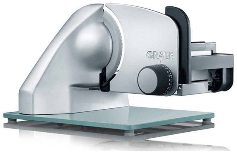 Ο κόφτης Greaf Classic C 20 είναι μια οικιακή συσκευή υψηλής ποιότητας, σχεδιασμένη για κοπή όλων των ειδών Η εξαιρετική ποιότητα κατασκευής, η ανθεκτικότητα και η στιβαρότητα της πλήρους μεταλλικής κατασκευής (με μια ανθεκτική, τεράστια γυάλινη πλάκα βάσης) κάνουν τους κόφτες Greaf πολύ. λειτουργικές και άφθαρτες συσκευές κουζίνας ΧΑΡΑΚΤΗΡΙΣΤΙΚΑ ΚΑΙ ΛΕΙΤΟΥΡΓΙΕΣ - Συμπαγές μεταλλικό περίβλημα με μεγάλη, ανθεκτική γυάλινη πλάκα στη βάση, - οδοντωτή λεπίδα από ανοξείδωτο χάλυβα, ηλεκτρολυτικά γυαλισμένη, - 17 cm, - Ρυθμιζόμενο πάχος κοπής στην περιοχή 0-20 mm, - Προστασία από τυχαία ενεργοποίηση της συσκευής, - Ισχυρός και αθόρυβος επαγωγικός κινητήρας με πυκνωτή λειτουργίας, 170 Watt, - Δυνατότητα συνεχούς λειτουργίας, - Οδηγοί από ανοξείδωτο χάλυβα, - Δίσκος καλωδίων,