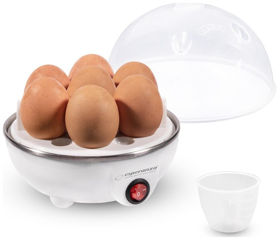 Η κουζίνα αυγών Esperanza θα εξασφαλίσει τέλειο μαγείρεμα των αυγών, στη μορφή που επιλέγετε - μαλακό, μέτριο ή σκληρό. Από εδώ και πέρα, δεν χρειάζεται πλέον να περιμένετε με ένα ρολόι στο χέρι για να απενεργοποιήσετε το μαγείρεμα την κατάλληλη στιγμή, το αυτόματο μηχάνημα θα το κάνει για εσάς. Το τέλειο πρωινό σε λίγα λεπτά. Απολαύστε το γεύμα σας! EAN: 5901299954188 Εγγύηση: 24 μήνες Κωδικός προμηθευτή: EKE001 Μέγιστος αριθμός αυγών: 7 Ισχύς: 350 W Επίστρωση: Κανένα Ηχητικό σήμα: Ναι Λειτουργίες: Αυγά μαγειρέματος διαφορετικής σκληρότητας: μαλακό, ημίσκληρο μετά από σκληρό αυτόματο διακόπτη. Περιλαμβάνεται : Μεζούρα με νυστέρι Χρώμα: λευκό Διαστάσεις: 15,7 cm; ύψος 17 cm Βάρος: 0,525 kg Άλλες παράμετροι: Μήκος καλωδίου ρεύματος: περίπου 55 cm{Αριθμός αυγών (μέγιστος)} 7 . {Αριθμός αυγών (μέγιστος)} 7 . {Αριθμός αυγών (μέγιστος)} 7 . {Αριθμός αυγών (μέγιστος)} 7 . {Ισχύς [W]} 350 . {Ισχύς [W]} 350 . {Ισχύς [W]} 350 . {Ισχύς [W]} 350 . {Beep} Ναι. {Beep} Ναι. {Beep} Ναι. {Beep} Ναι. {Χρώμα} Λευκό . {Χρώμα} Λευκό . {Χρώμα} Λευκό . {Χρώμα} Λευκό