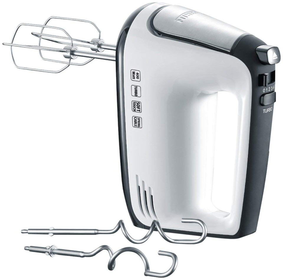σχεδιασμός υψηλής ποιότητας με στοιχεία από ανοξείδωτο χάλυβα{Χρώμα} Λευκό . {Pulse mode} Όχι. {Λειτουργία Turbo} Ναι. {αριθμός ταχυτήτων} 5 . {Ισχύς} 400 W . {Μπολ} Χωρίς μπολ. {Χωρητικότητα μπολ} Δεν ισχύει. {Γάντζοι ζύμης} Ναι. {Mixer} Όχι. {Chopper} Αρ