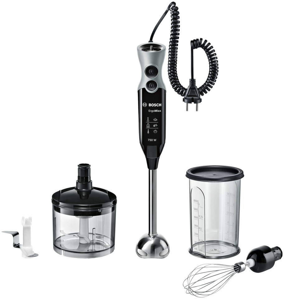 Για να κάνει το μαγείρεμα ακόμα πιο άνετο, το μπλέντερ Bosch διαθέτει μια σειρά από αξεσουάρ που το καθιστούν μια εξαιρετικά ευέλικτη και χρήσιμη συσκευή σε κάθε κουζίνα. Στη διάθεσή σας είναι ένα πόδι ανάμειξης εξοπλισμένο με τη λειτουργία AntiSplash, η οποία αποτρέπει τον κίνδυνο να πιτσιλίσετε κατά λάθος την κουζίνα και να λερώσετε τα ρούχα σας. Επιπλέον, μια χρήσιμη προσθήκη είναι ένα σύρμα, χάρη στο οποίο μπορείτε να ανακατέψετε με ακρίβεια τα υλικά της ζύμης ή να χτυπήσετε τα ασπράδια αυγών στην τελειότητα.