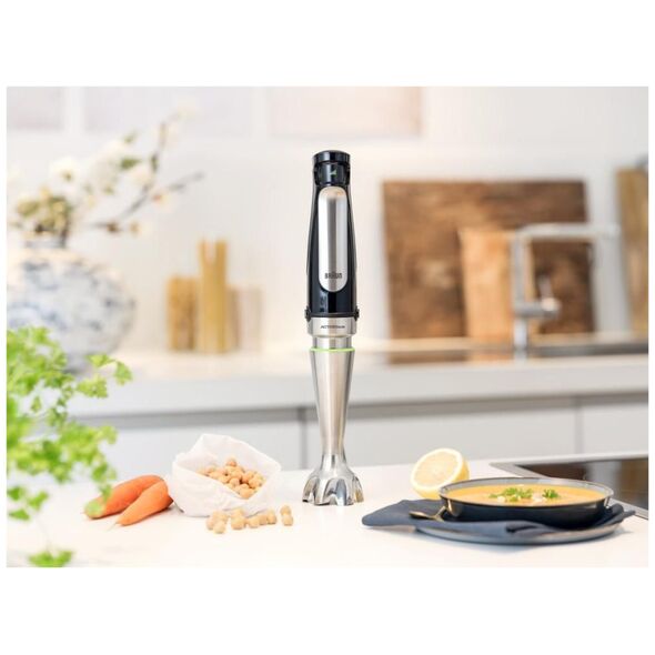 Wyposażony w pierwsze na świecie ruchome ostrze, blender MQ 7X Braun bez trudu poradzi sobie z najtwardszymi składnikami. Innowacyjna technologia ACTIVEBlade wykorzystuje aż o 250% większą strefę aktywnego blendowania*. Model MQ 7045, z zestawem profesjonalnych akcesoriów, to mistrz drinków, smoothies i koktajli, zaskakujący wszechstronnością oraz kulinarnymi możliwościami. Dzięki mocnemu, 1000-watowemu silnikowi, ergonomicznej formie oraz zaawansowanym funkcjom będzie przez lata niezawodną pomocą w każdej kuchni.