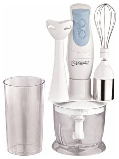 BLENDER MAESTRO MR-563Η πολυλειτουργική συσκευή είναι εξοπλισμένη με ρύθμιση ταχύτητας. Οι λεπίδες είναι κατασκευασμένες από υψηλής ποιότητας ανοξείδωτο χάλυβα, το οποίο εγγυάται αποτελεσματική και απρόσκοπτη χρήση. Το μπλέντερ είναι τέλειο για την προετοιμασία των αγαπημένων σας κέικ, καθώς και για κοκτέιλ, smoothies και πουρές λαχανικών.Προδιαγραφές: Τροφοδοτικό : 220 - 240V, 50Hz Ισχύς: 300W