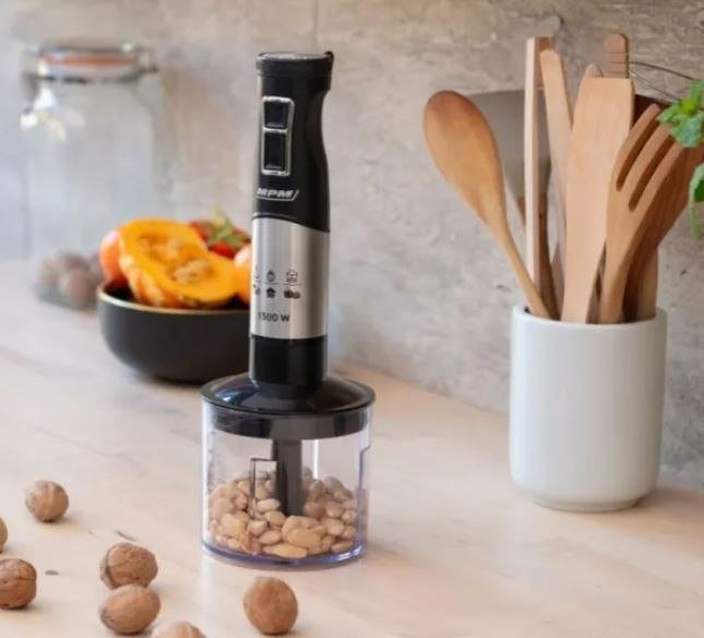 NIESKOŃCZONE MOŻLIWOŚCI GOTOWANIAOdkryj magię eksperymentowania w kuchni z MBL-34M. Wysokiej jakości urządzenie z różnorodnymi akcesoriami nie tylko ułatwia codzienne gotowanie, ale także inspiruje do nowatorskich pomysłów. W zestawie znajdziesz: pojemnik 500 ml z nożem ze stali nierdzewnej do rozdrabniania i siekania - idealny do mięs, serów, owoców, orzechów i warzyw, przystawkę miksującą ze stali nierdzewnej do przyrządzania koktajli, zup, przecierów - przystosowaną do pracy w wysokiej temperaturze, przystawkę do ubijania piany z białek i lekkich sosów oraz pojemnik 700 ml do przechowywania. Twórz nowe smaki każdego dnia.