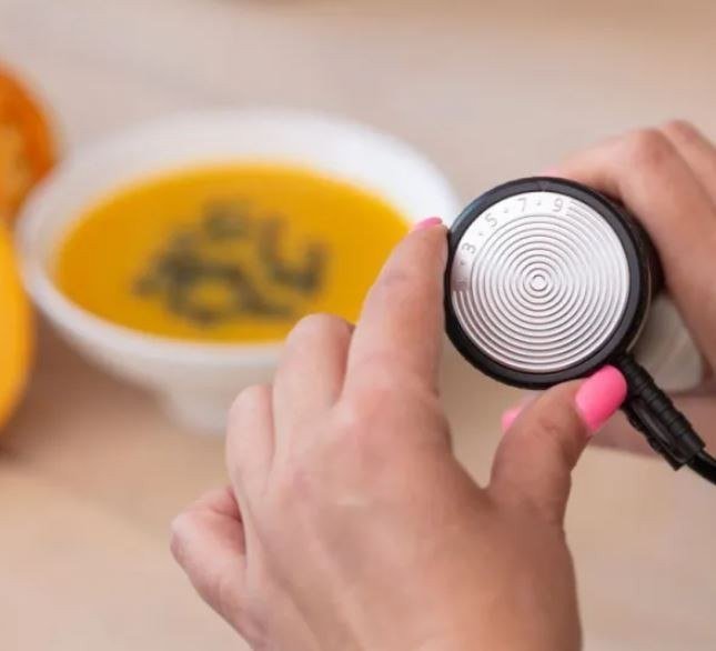 MOC W TWOICH RĘKACHDopasuj prędkość blendera do kulinarnych potrzeb. Wygodny w użyciu pierścień w górnej części rękojeści daje możliwość ustawienia mocy blendera na jednym z dziewięciu poziomów. Rozpocznij blendowanie od niskich prędkości i stopniowo je zwiększaj. Unikniesz ewentualnego rozchlapywania i będziesz w stanie kontrolować stopień rozdrobnienia składników. Skorzystaj z funkcji Turbo, gdy potrzebujesz szybkiego efektu lub miksujesz zmrożone składniki.