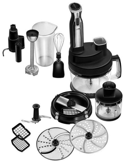 Η μηχανή επεξεργασίας τροφίμων MRK-17 περιλαμβάνει ένα ολοκληρωμένο σετ αξεσουάρ που μπορούν να πλυθούν στο πλυντήριο πιάτων: