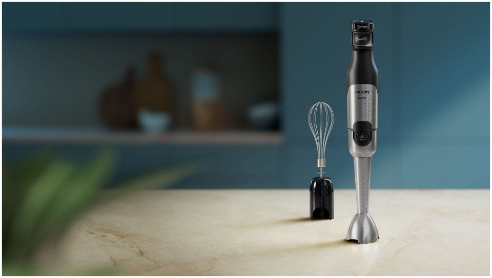 Najmocniejszy blender ręczny pozwala wymieszać nawet najtwardsze składniki. W mgnieniu oka przygotuj mleko orzechowe i mrożone koktajle.