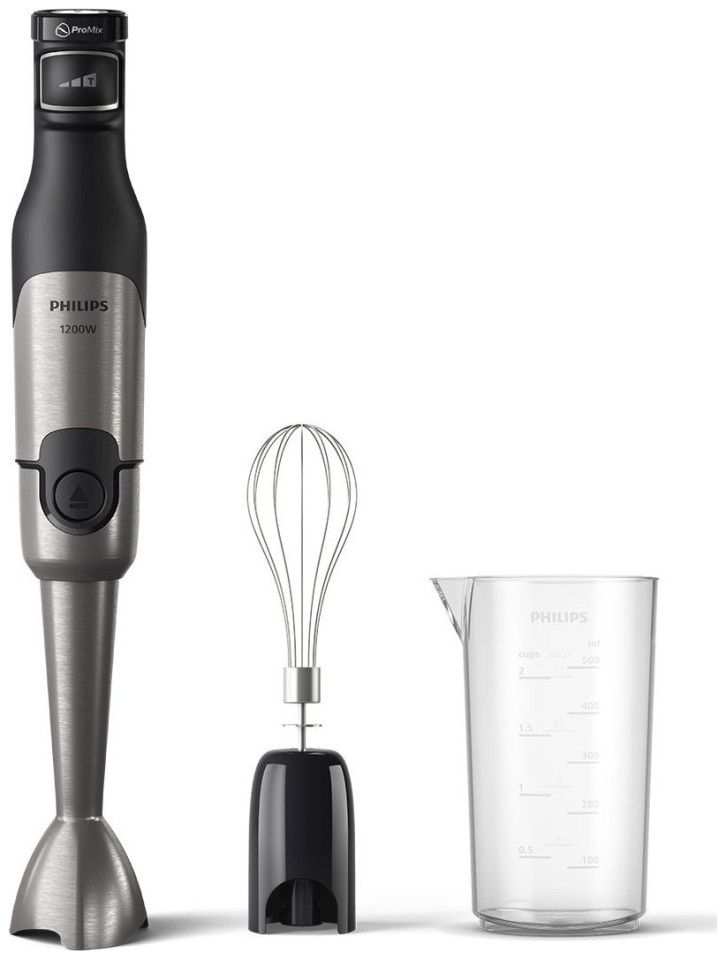 Błyskawiczne miksowanie nawet najtwardszych składników Nasz najmocniejszy blender ręczny Dzięki mocy większej o 50%* blender ręczny Philips z serii 5000 rozdrabnia dowolne składniki i jest idealnym wyborem, jeśli chcesz uzyskać doskonałe i równomierne rezultaty. Ciesz się kremowymi zupami i jedwabistymi sosami, odkrywając przepisy na nowo!•Osłonka przeciwrozpryskowa na ostrza•Nasadka z trzepaczką•Jeden przycisk•Łatwe czyszczenie•Wskaźnik prędkości LED•Niewielkie rozmiary urządzenia zapewniają wygodne przechowywanie•Technologia SpeedTouch•Silnik o wysokiej mocy 1200 W•Technologia ProMix