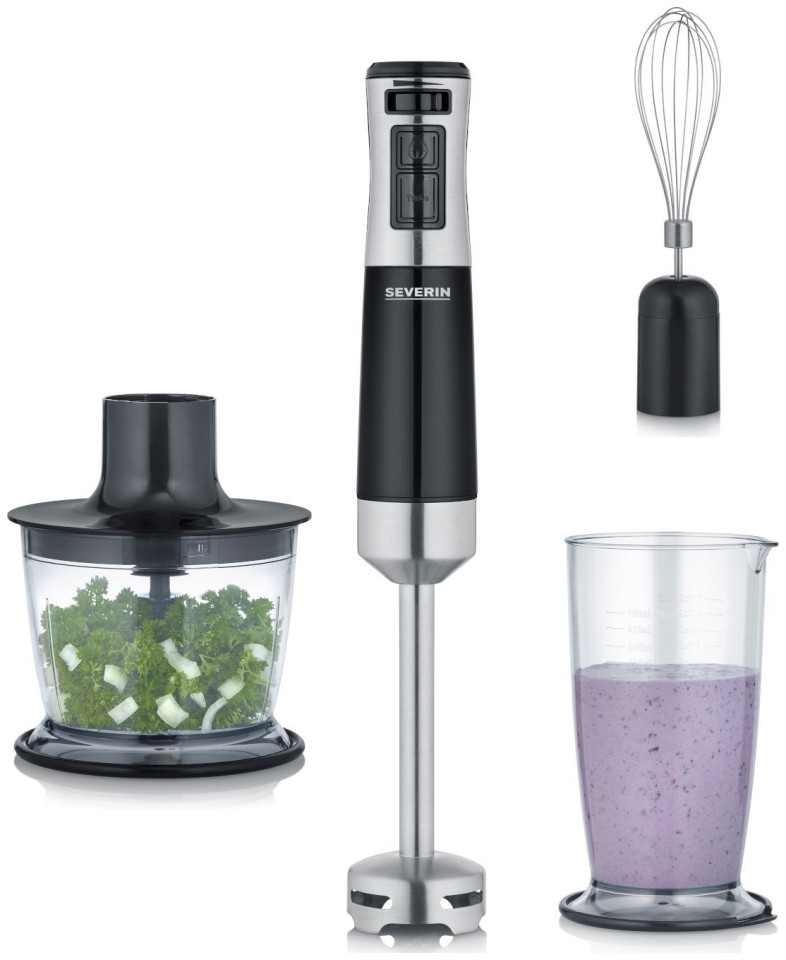 Severin SM 3772. Χωρητικότητα μπολ: 0,7 l, Ταχύτητα περιστροφής (μέγιστο): 15000 RPM, Ρύθμιση ταχύτητας: Stepless. Μοντέλο: Μπλέντερ εμβάπτισης, Χρώμα προϊόντος: Μαύρο, Ανοξείδωτο ατσάλι. Υλικό περιβλήματος: Ανοξείδωτο ατσάλι. Ισχύς: 600 W. Πλάτος προϊόντος: 60 mm, Βάθος προϊόντος: 60 mm, Ύψος προϊόντος: 390 mm