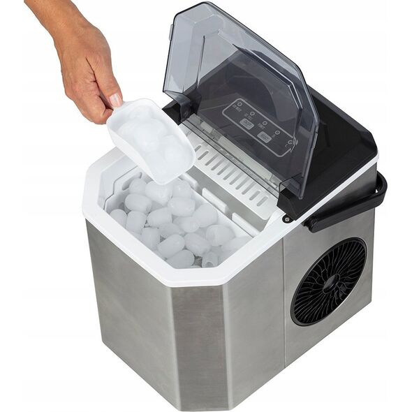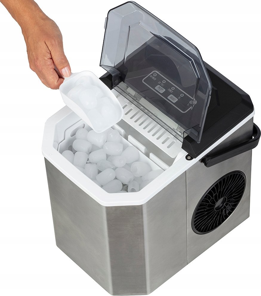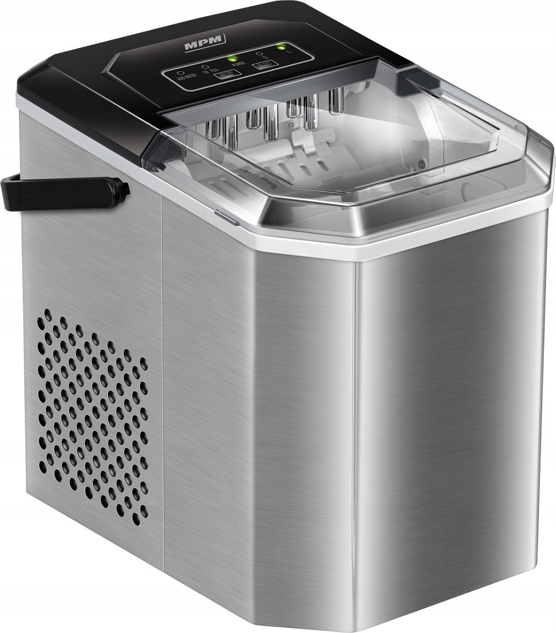 Kostkarka do lodu MPM MKD-04M Masz ochotę odświeżyć pragnienie orzeźwiającym koktajlem lub szklanką źródlanej wody z kostkami lodu, plasterkiem cytryny i gałązką mięty? Wybierz kostkarkę do lodu MKD-04M i ciesz się doskonale schłodzonymi napojami już w ciągu kilku minut. W tym urządzeniu można przygotować aż 12 kilogramów kostek lodu na dobę. Wystarczy napełnić zbiornik wodą, odczekać 6-8 minut i pierwsza porcja lodu jest gotowa. Do wyboru są dwie wielkości kostek: S i L, w zależności od preferencji. Kostki można dodać do ulubionego napoju, koktajlu, shake'a, źródlanej wody, a także użyć do schłodzenia produktów spożywczych.Uwielbiasz zimne, orzeźwiające napoje, koktajle lub shake'i? Odkryj kostkarkę do lodu o mocy 150 W, która przygotuje aż 12 kilogramów kostek lodu na dobę i 9 kostek już w ciągu 6-8 minut. Wystarczy napełnić zbiornik wodą, odczekać kilka minut i gotowe. Świeżą porcję lodu dodaj do ulubionego napoju i poczuj jego energetyzujący smak.Zimne kostki lodu zapewniają odświeżenie, wzbogacają smak lemoniady, koktajli czy smoothie oraz podnoszą atrakcyjność wizualną. Czy wiedziałeś, że rozmiar kostek lodu ma znaczenie? Ich wielkość wpływa na to, jak szybko lód się topi, a tym samym na to, ile wody rozcieńcza napój, co w efekcie ma wpływ na jego smak.Urządzenie można swobodnie przenosić lub zabrać na przykład na imprezę. Rodzinne przyjęcie, urodzinowa impreza, grillowanie poza miastem, a może podróżowanie kamperem? Świeży lód zawsze jest przydatny, zwłaszcza latem. Kompaktowy rozmiar kostkarki MKD-04M i wygodna rączka pozwalają na łatwe przenoszenie jej do innego pomieszczenia, zabranie na świeże powietrze oraz swobodne umieszczenie na kuchennym blacie, nawet w małej kuchni.Lampki kontrolne informują o etapach zamrażania kostek lodu i sygnalizują np. brak wody lub zapełnienie zbiornika. W zestawie znajduje się łopatka i koszyk na lód.