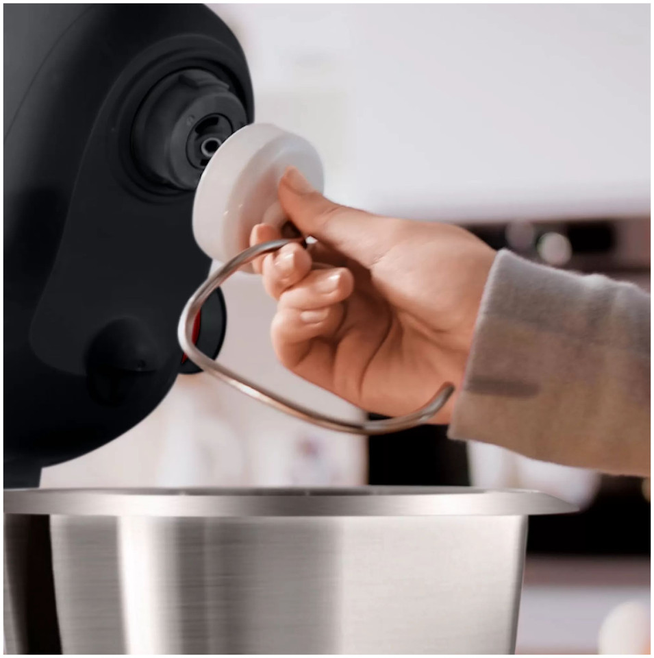 Nie oceniaj idealnej misy tylko po jej rozmiarze! Aby uzyskać najlepsze rezultaty ważne jest przede wszystkim wewnętrzne ukształtowanie misy oraz idealnie wspólpracujące z nią mieszadła. Wysokiej jakości misa ze stali nierdzewnej o pojemności całkowitej 3,8l nadaje się zarówno do przetwarzania małych ilości składników jak i znacznie większych. W nowej misie bez problemu wymieszasz ciasto o maksymalnej masie 2,4 kg w przypadku lekkiego ciasta np. biszkoptowego jak również 1,7 kg ciężkiego ciasta drożdżowego.