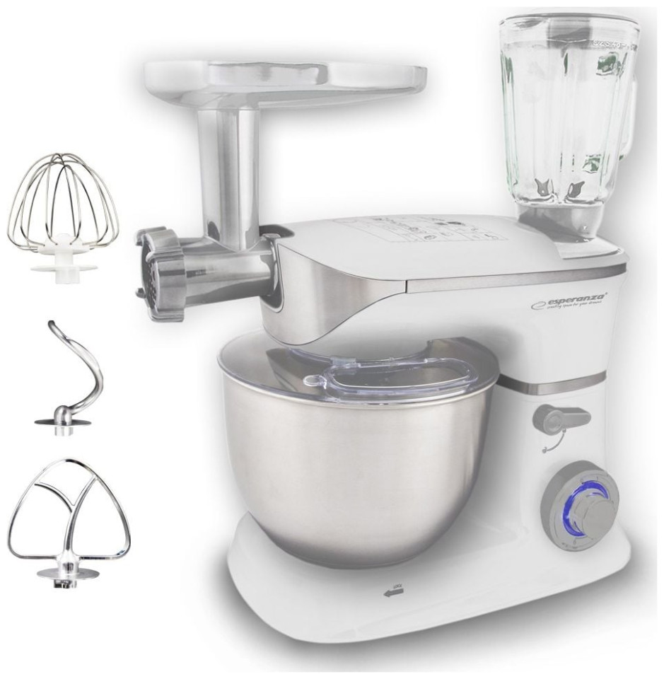 Το πολυλειτουργικό πλανητικό ρομπότ Esperanza COOCKING MASTER διαθέτει έναν ανθεκτικό και ισχυρό κινητήρα, χάρη στον οποίο μπορεί να ανταπεξέλθει ακόμη και στις μεγαλύτερες προκλήσεις της κουζίνας. Η ομαλή ρύθμιση ταχύτητας και η λειτουργία ελέγχου παλμού σάς επιτρέπουν να προσαρμόσετε την ταχύτητα λειτουργίας σε ένα συγκεκριμένο πιάτο. Με τη βοήθειά του, μπορείτε εύκολα να προετοιμάσετε διάφορα σνακ, κέικ, πιάτα και επιδόρπια.