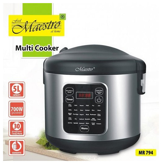 Uniwersalny pomocnik w kuchni, pozwala przygotować wiele smacznych i zdrowych dań Wyposażony w sterowanie elektroniczne Posiada 30 programów przygotowania różnych potraw, Duży wyświetlacz LCD, Programowalny zegar do 24 godzin Pojemność: 5 l. Obudowa wykonana ze stali nierdzewnej Zasilanie 220-240 V, 50 Hz, Moc 700 W