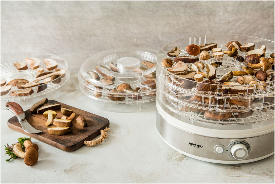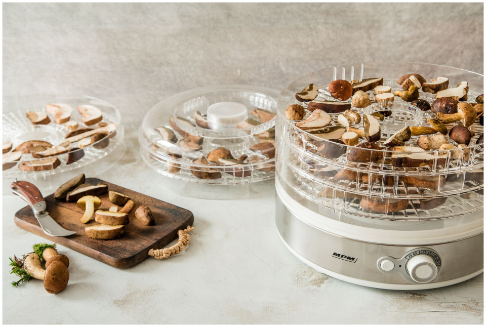 Suszarka spożywcza MSG-11 to urządzenie praktyczne, dające nowe możliwości. Dzięki niej możesz nie tylko wysuszyć grzyby, ale także zioła. W takiej postaci mogą posłużyć jako zdrowa, ziołowa herbatka czy zamiennik sklepowych kostek warzywnych. Suszone owoce i warzywa to również alternatywa na zdrową i słodką przekąskę dla dzieci. Takie chipsy przygotowane w domowym zaciszu są pozbawione konserwantów i niezdrowych substancji słodzących. Dodają energii i przede wszystkim dostarczają cennych mikroelementów oraz witamin.