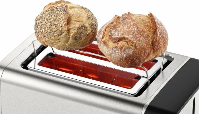 Moc: 970W Kolor: stal szlachetna, czarny Kromki: 2 Regulacja temperatury: bezstopniowo Wyposażenie: funkcja rozmrażania, funkcja podgrzewania, funkcja podnoszenia tostów, ruszt do opiekania pieczywa, automatyczne centrowanie pieczywa, tacka na okruchy, zwijanie kabla, przycisk Stop