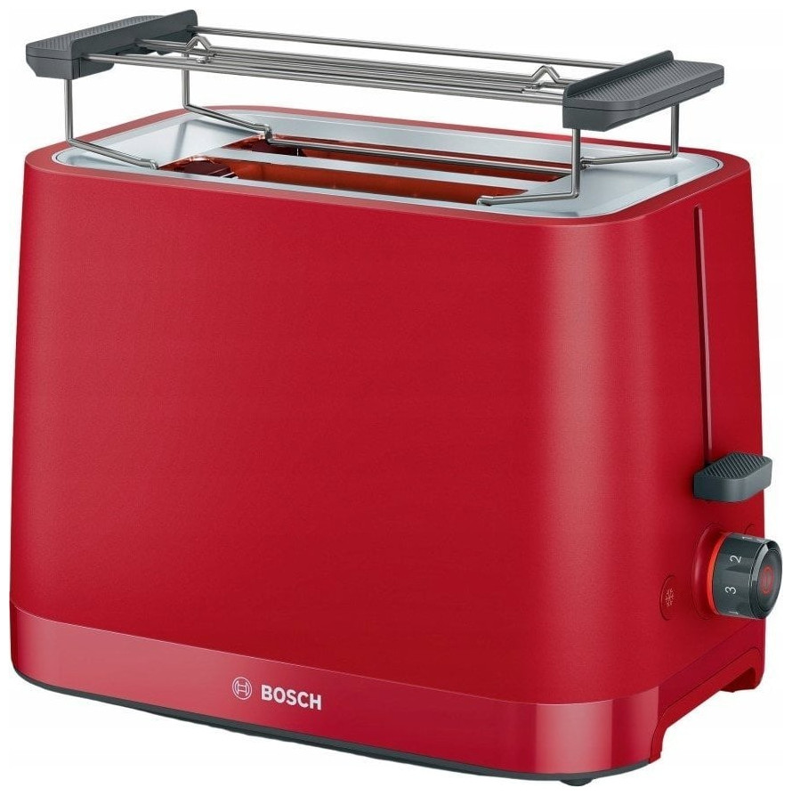 Τοστιέρα Bosch MyMoment TAT3M124 950W 2 τοστ Απόψυξη Η κόκκινη τοστιέρα Bosch MyMoment TAT3M124 είναι εξοπλισμός που θα εμπλουτίσει την κουζίνα σας με λειτουργικότητα και στυλ. Φινιρισμένο σε κλασικό κόκκινο χρώμα, θα ταιριάζει αρμονικά σε κάθε διάταξη. Έχει ισχύ 950 W, χάρη στην οποία το τοστ σας θα είναι πάντα τέλεια τραγανό. Αυτό το μοντέλο προσφέρει πολλές πρακτικές λειτουργίες. Το αυτόματο κεντράρισμα του ψωμιού εξασφαλίζει ομοιόμορφο ψήσιμο, ανεξάρτητα από το πάχος του τοστ. Η σχάρα για ρολά σάς επιτρέπει να ζεστάνετε ρολά ή κρουασάν και η λειτουργία απόψυξης θα σας επιτρέψει να χρησιμοποιήσετε τη φρυγανιέρα χωρίς να χρειαστεί να ξεπαγώσετε πρώτα το ψωμί. Η τοστιέρα είναι εξοπλισμένη με αφαιρούμενο δίσκο για ψίχουλα, που διευκολύνει τη διατήρηση της καθαριότητας και η λειτουργία High Lift σάς επιτρέπει να αφαιρείτε με ασφάλεια ακόμη και μικρές φέτες ή τοστ. Η τοστιέρα Bosch MyMoment TAT3M124 είναι ένας συνδυασμός λειτουργικότητας και μοντέρνου σχεδιασμού που σίγουρα θα ανταποκριθεί στις προσδοκίες των πιο απαιτητικών χρηστών. ΠΙΟ ΣΗΜΑΝΤΙΚΕΣ ΠΑΡΑΜΕΤΡΟΙ Χρώμα: Κόκκινο Ισχύς: 800-950 W Ομαλός έλεγχος του βαθμού φρυγανίσματος Ηλεκτρονική επίβλεψη της έντασης του ψησίματος Το αυτόματο κεντράρισμα του ψωμιού εξασφαλίζει ομοιόμορφο ψήσιμο. Αφαιρέστε τις μικρές φέτες ψωμιού Εύκολα Αποθήκευση Φωτιζόμενο κουμπί STOP Αυτόματη απενεργοποίηση όταν το ψωμί κολλάει. Η αίσθηση ενός Σαββατοκύριακου κατά τη διάρκεια της εβδομάδας. Οι περισσότεροι άνθρωποι απολαμβάνουν ένα πολύ ωραίο πρωινό το Σαββατοκύριακο. Πώς θα ήταν αν μπορούσατε να ζήσετε μια μικρή στιγμή του Σαββατοκύριακου κατά τη διάρκεια της εβδομάδας; Χάρη στη λειτουργία απόψυξης και θέρμανσης, θα κάνετε το ψωμί εξαιρετικά τραγανό - σαν να το έχετε φέρει κατευθείαν από το αρτοποιείο. Όχι άλλα καμένα δάχτυλα όταν βγάζετε τοστ. Μερικές φορές θέλετε να ψήσετε ένα μικρό κομμάτι ψωμί για να κάνετε το πρωινό σας ξεχωριστό. Αυτό είναι αρκετή ταλαιπωρία με τις περισσότερες τοστιέρες. Όχι όμως με τη λειτουργία High Lift! Χάρη σε αυτή τη λειτουργία, δεν αντιμετωπίζετε τέτοιο πρόβλημα - διευκολύνει την αφαίρεση του τοστ ανυψώνοντάς το επιπλέον από το θάλαμο φρυγανίσματος. Μην ανησυχείτε - απλά φάτε το πρωινό σας με την ησυχία σας Με το αυτόματο κλείσιμο είστε στην ασφαλή πλευρά, καθώς η τοστιέρα θα σβήσει αυτόματα εάν το ψωμί κολλήσει μέσα στο θάλαμο του τοστ. Το τέλειο τοστ περιμένει μόνο για εσάς. Και μετά... το αποτέλεσμα δεν είναι αυτό που περίμενες. Ωστόσο, όταν έχετε μια τοστιέρα με αυτόματο κεντράρισμα ψωμιού, έχετε ακριβώς το αποτέλεσμα που ονειρεύεστε. Οι φέτες ψωμιού κεντραρίζονται αυτόματα και η τοστιέρα εξασφαλίζει ομοιόμορφο ψήσιμο. ΤΕΧΝΙΚΕΣ ΠΡΟΔΙΑΓΡΑΦΕΣ Διαστάσεις συσκευής: 207 x 293 x 175 mm Διαστάσεις συσκευασμένης συσκευής (ΥxΠxΒ) (mm): .255 x 200 x 330 mm Καθαρό βάρος: 1,6 kg Μεικτό βάρος: 2,2 kg 5 2 W209 Συνδεδεμένη ισχύς: . -240 V Συχνότητα: 50/60 Hz Μήκος καλωδίου σύνδεσης: 100,0 cm Τύπος βύσματος: Schuko/Gardy βύσμα με γείωση
