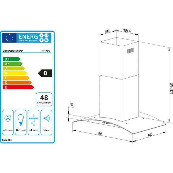 Okap kuchenny wyspowy 90 cm Berdsen + rura spiro oraz maskownica