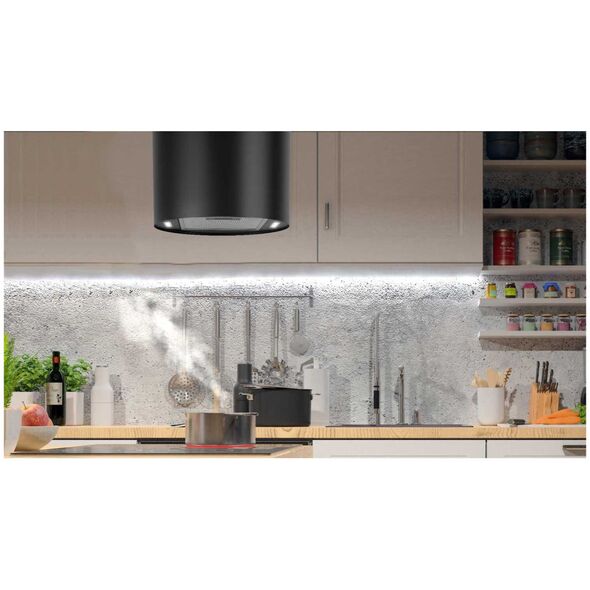 Prezentowany okap wyspowy to idealne rozwiązanie dla osób szukających wydajnego urządzenia, które również nada kuchni stylu i szyku.