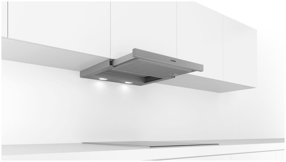 Ενσωματωμένη τηλεσκοπική κουκούλα: ενσωματωμένη στο ντουλάπι, είναι ελάχιστα αισθητή, γεγονός που εξασφαλίζει την αισθητική της κουζίνας.