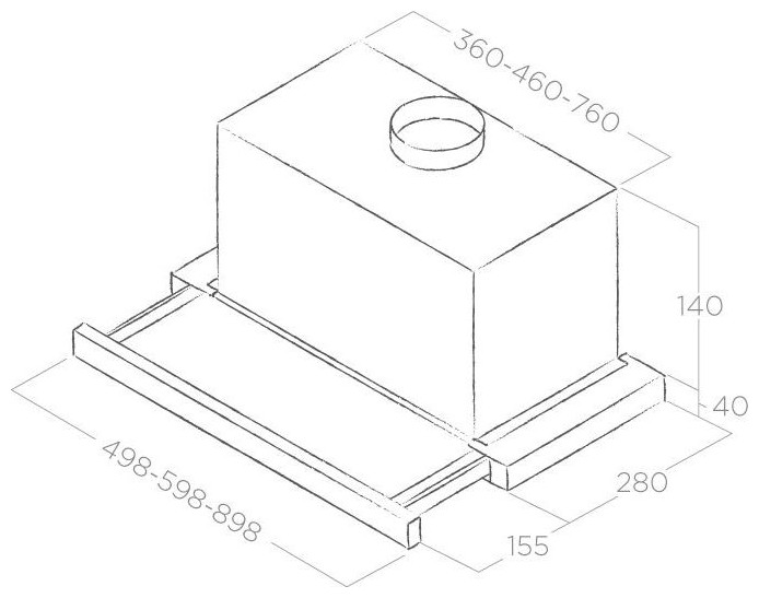 είναι μια κουκούλα κάτω από το ντουλάπι, αισθητικά σχεδιασμένη για να χωράει κάτω από ένα ντουλάπι. Το σύστημα αναρρόφησης παρέχει καλύτερη απόδοση από τα αντίστοιχα.