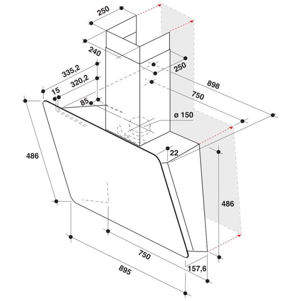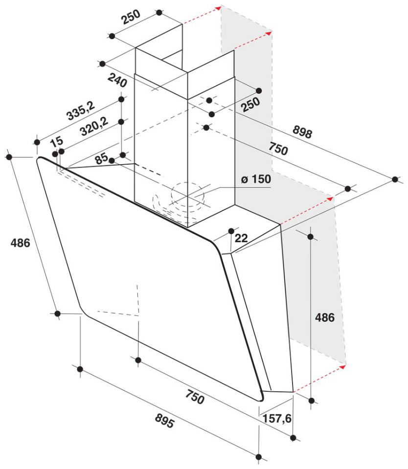 Αυτή η κουκούλα τοίχου είναι εξαιρετικά εύκολη στην εγκατάσταση.