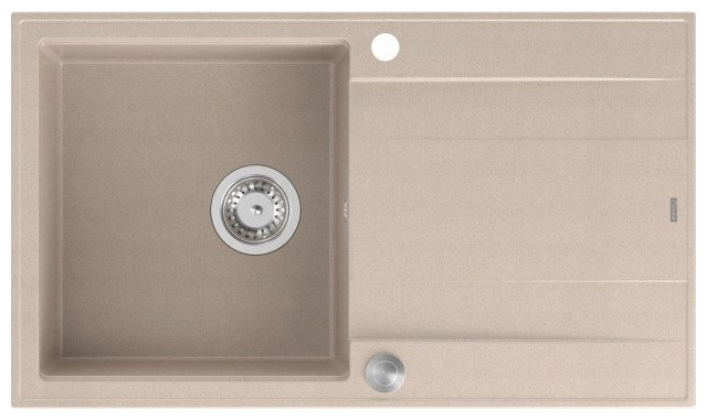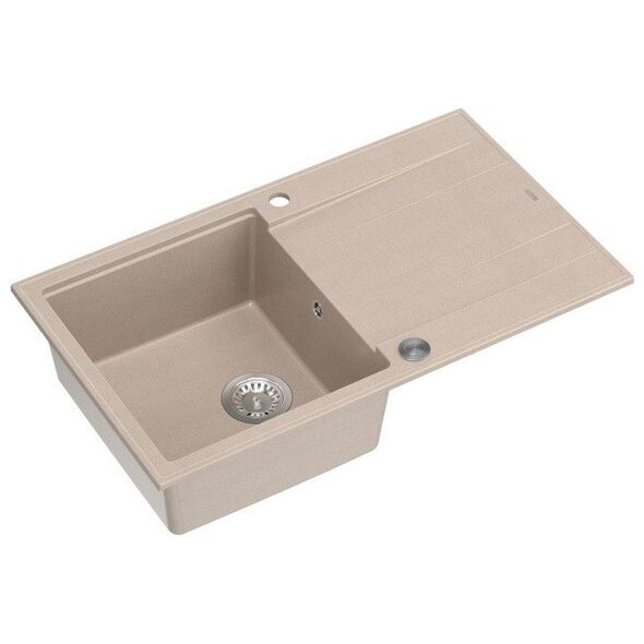 EVAN 111 GraniteQ νεροχύτης με σιφόν Push 2 Open 1-θέσης χωρίς αποστράγγιση (860x500x210) μαργαριταρένιο μπεζ / μεταλλικά στοιχεία