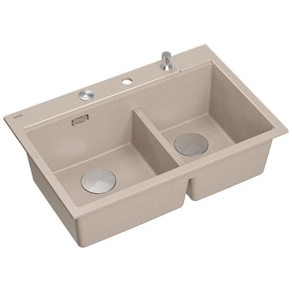 MARC 120 WORKSTATION GraniteQ νεροχύτης 2-θέσεων 760*500*235 mm pearl beige + σιφόνι push to open + διανομέας ανοξείδωτος + ένθετο αποστράγγισης + Qmata + σανίδα/ ανοξείδωτα στοιχεία