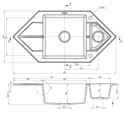 Νεροχύτης Hexon 1,5 μπολ με αποστραγγιστικό (ZQP A653)
