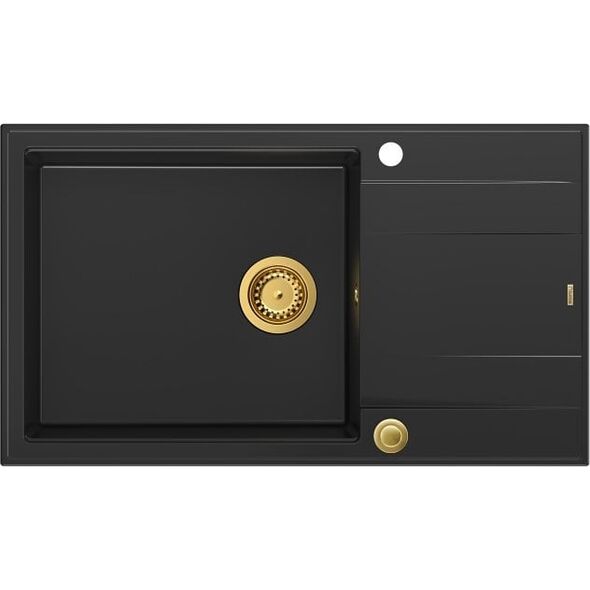 Νεροχύτης GraniteQ EVAN 136 XL GraniteQ νεροχύτης με σιφόν Push To Open 1-θέσης με/χωρίς (860x500x210| θάλαμος 420x490) καθαρός άνθρακας / χρυσά στοιχεία