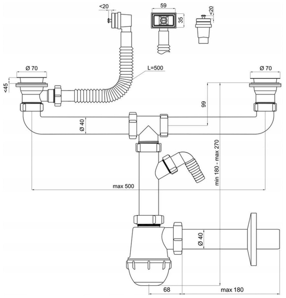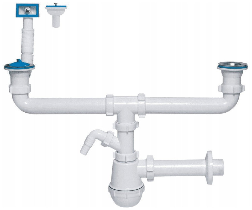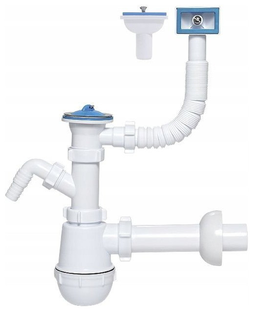 Σιφόνι νεροχύτη Instadrain fi 50 mm μπουκαλάκι, 2 θάλαμοι, με έξοδο για πλυντήριο/πλυντήριο πιάτων 1234