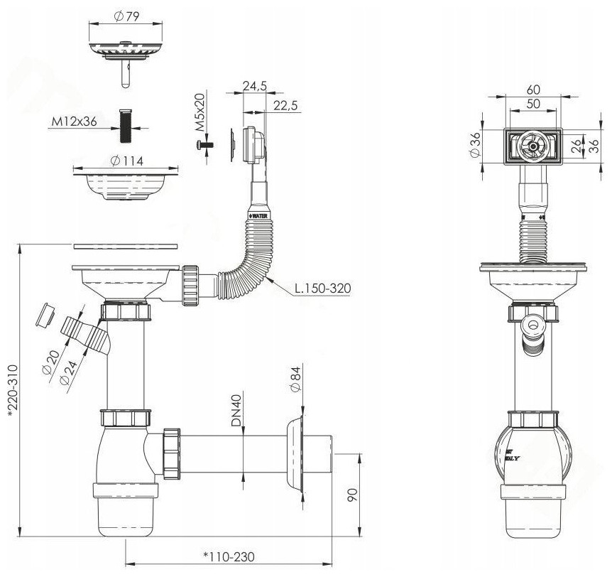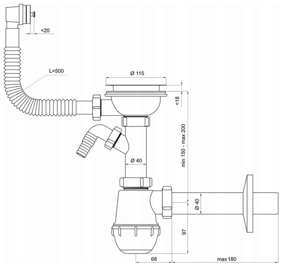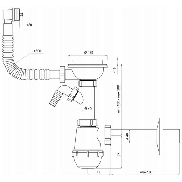 Σιφόνι νεροχύτη Instadrain fi 90 mm μπουκαλάκι, 1-θάλαμος, με έξοδο για πλυντήριο/πλυντήριο πιάτων 2663