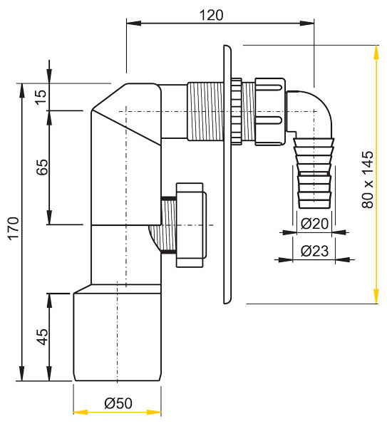 Σιφόνι Alca plast υποτοίχιο DN50 χρώμιο (APS3)